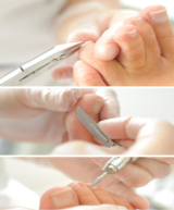 knippen. Ik verwijder de aanwezige resten van de mycose uit de